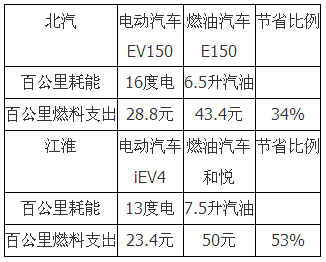江淮電動(dòng)汽車iEV4與燃油汽車和悅是同款。iEV4百公里電耗是13度,6.5元。和悅百公里油耗7.5升,50元。電動(dòng)車燃料支出節(jié)約87%。