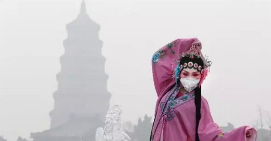 ▲西安秦腔演員行為藝術(shù)呼吁環(huán)保