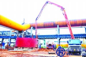 為滿足系統(tǒng)安全生產(chǎn)和環(huán)保的要求,近日,山西晉煤天源公司新增了兩套造氣洗氣塔裝置。這兩套裝置投用后,可有效減少煤氣中攜帶的有害氣體,減少對(duì)系統(tǒng)管道和設(shè)備的影響,有效降低大氣污染。圖為該公司洗氣塔施工現(xiàn)場(chǎng)。 (何彥祺 攝)