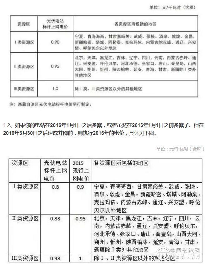 1.1、如果你的電站在2016年1月1日前備案并在2016年6月30日前建成并網(wǎng)了,則執(zhí)行2015年的電價,具體見下圖。
