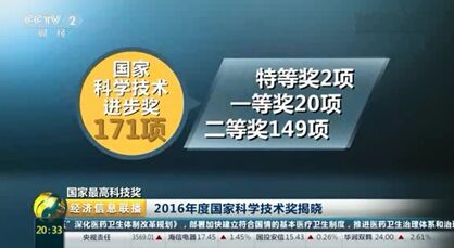 2017年1月9日,由中共中央,國務(wù)院召開的“2016年度國家科學(xué)技術(shù)獎勵大會”在北京隆重舉行。2016年度國家科學(xué)技術(shù)進(jìn)步獎共評選出171項,其中特等獎2項、一等獎20項、二等獎149項。黨和國家領(lǐng)導(dǎo)人習(xí)近平、李克強(qiáng)、劉云山、張高麗出席大會并為獲獎代表頒獎。