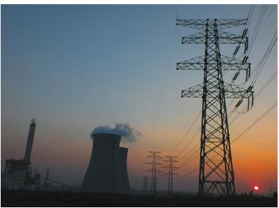 2014年9月22日,湖北宜昌,夕陽下的火力發(fā)電廠及其電網(wǎng)。