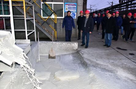 2017年1月3日上午,環(huán)境保護(hù)部重污染天氣應(yīng)急督查第九督查組冒雪在鶴煤化工檢查。攝影/章軻