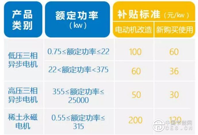 本市企業(yè)購(gòu)買(mǎi)使用列入國(guó)家“能效領(lǐng)跑者”目錄或者2級(jí)及以上能效水平的高效電機(jī);其中電動(dòng)機(jī)拖動(dòng)的風(fēng)機(jī)、水泵、空壓機(jī)至少達(dá)到2級(jí)能效水平。節(jié)能服務(wù)機(jī)構(gòu)購(gòu)買(mǎi)的高效電機(jī)必須在本市安裝使用,單個(gè)企業(yè)購(gòu)買(mǎi)總功率在300kW以上。