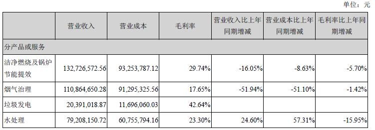 科融環(huán)境上半年的收入主要來(lái)源于潔凈燃燒及鍋爐節(jié)能提效、煙氣治理、垃圾發(fā)電、水處理四大業(yè)務(wù)板塊。其中,潔凈燃燒及鍋爐節(jié)能提效實(shí)現(xiàn)營(yíng)收13,272.66萬(wàn)元,占總營(yíng)收的38.67%,同比下滑16.05%,煙氣治理實(shí)現(xiàn)營(yíng)收11,086.47萬(wàn)元,占總營(yíng)收的32.30%,同比下滑51.94%,垃圾發(fā)電是科融環(huán)境新增業(yè)務(wù),實(shí)現(xiàn)營(yíng)收2,039.10萬(wàn)元,占中營(yíng)收的5.94%,水處理實(shí)現(xiàn)營(yíng)收7,920.82萬(wàn)元,占總營(yíng)收的23.08%,同比增長(zhǎng)24.60%。