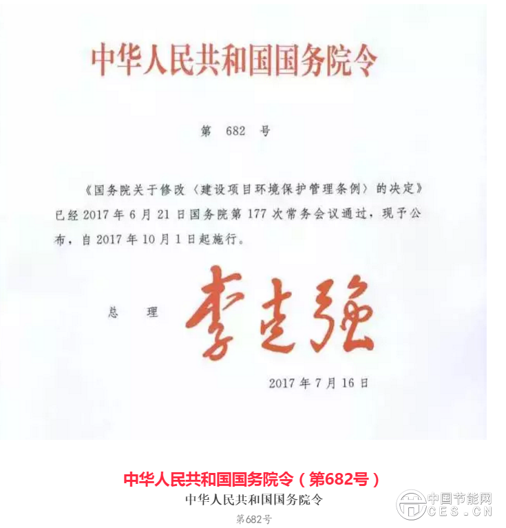 《國(guó)務(wù)院關(guān)于修改〈建設(shè)項(xiàng)目環(huán)境保護(hù)管理?xiàng)l例〉的決定》已經(jīng)2017年6月21日國(guó)務(wù)院第177次常務(wù)會(huì)議通過(guò),現(xiàn)予公布,自2017年10月1日起施行。