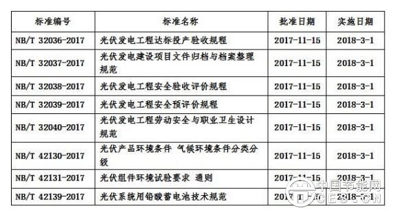 值得一提的是,2018年將有8項(xiàng)新標(biāo)準(zhǔn)得到實(shí)施,或許能稍解光伏行業(yè)標(biāo)準(zhǔn)缺失的燃眉之急。11月23日,國(guó)家能源局下發(fā)2017年第10號(hào)公告,公告顯示,國(guó)家能源局批準(zhǔn)204項(xiàng)行業(yè)標(biāo)準(zhǔn),實(shí)施時(shí)間為2018年3月1日,其中包含光伏標(biāo)準(zhǔn)8項(xiàng)。這8項(xiàng)標(biāo)準(zhǔn)分別為:
