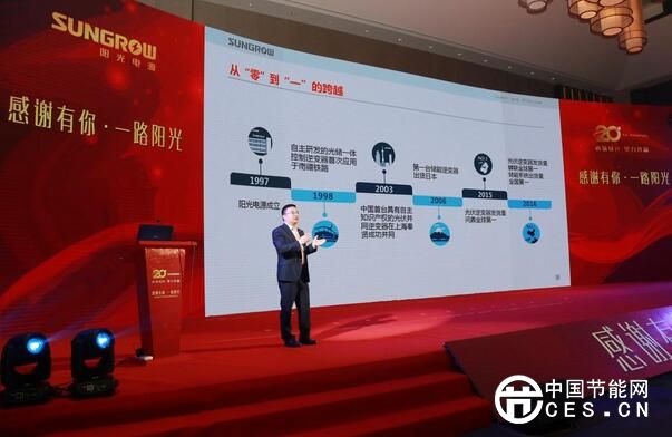 會上,陽光電源高級副總裁趙為發(fā)表了主題為《成就客戶是我們的唯一價值》的精彩演講,回顧了陽光電源20年的成長歷程,并衷心感謝了一路以來支持陽光電源的各界朋友。談及陽光電源發(fā)展歷程,趙為認為“成就客戶始終是陽光電源創(chuàng)新的動力源”,為實現(xiàn)用戶側(cè)平價上網(wǎng),陽光電源一直走在創(chuàng)新發(fā)展的路上。未來光伏發(fā)電將越來越智能化,能源互聯(lián)網(wǎng)成為行業(yè)發(fā)展趨勢,陽光電源將堅持做極致的逆變器,并通過精湛的電力電子技術(shù)、互聯(lián)網(wǎng)、智能終端等技術(shù)使設(shè)備長期可靠運行,提升效能,助力清潔能源早日百分百替代傳統(tǒng)能源!