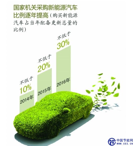 稍后,國(guó)家機(jī)關(guān)事務(wù)管理局、財(cái)政部等聯(lián)合公布《政府機(jī)關(guān)及公共機(jī)構(gòu)購(gòu)買(mǎi)新能源汽車(chē)實(shí)施方案》,要求2014年中央國(guó)家機(jī)關(guān)以及納入新能源汽車(chē)推廣試點(diǎn)城市的政府機(jī)關(guān)和公共機(jī)構(gòu),購(gòu)買(mǎi)的新能源汽車(chē)占當(dāng)年配備更新總量的比例不低于10%,2015年不低于20%,2016年不低于30%,以后逐年提高。