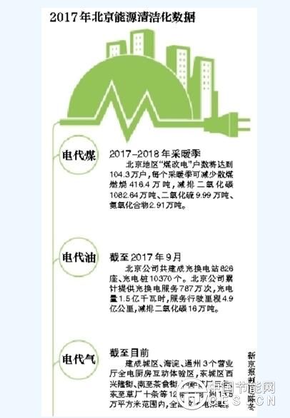 在這場“藍天保衛(wèi)戰(zhàn)”中,電能作為清潔低碳能源受到青睞。據(jù)統(tǒng)計,2017-2018年采暖季,北京地區(qū)“煤改電”戶數(shù)已達到百萬戶,每個采暖季可減少散煤燃燒386.2萬噸,減排二氧化碳1004.12萬噸。同時,在“電代油”方面,根據(jù)國網(wǎng)北京電力公司統(tǒng)計數(shù)據(jù),截至2017年11月,累計充電量1.68億千瓦時,減排二氧化碳17.28萬噸。