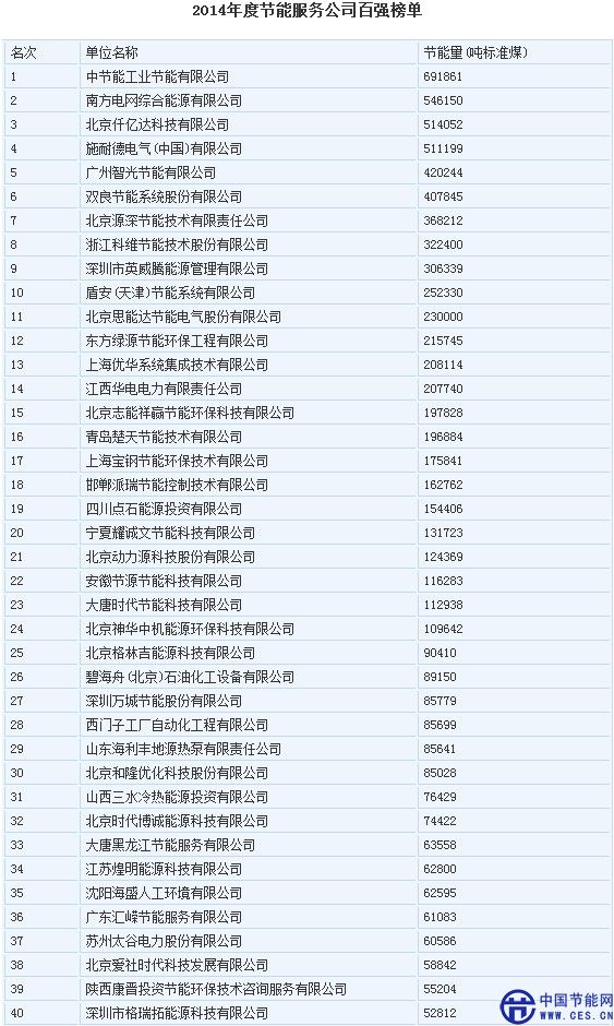 2014節(jié)能服務(wù)公司百強(qiáng)榜單