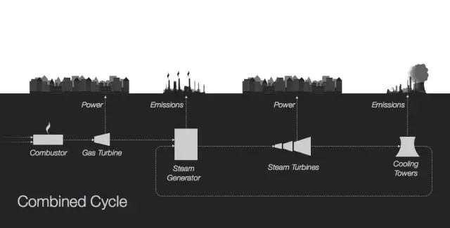 這一技術(shù)的核心出自英國(guó)工程師Rodney Allam。按照他的設(shè)想,將天然氣、氧氣與超臨界CO2混合并燃燒,并用由此產(chǎn)生的廢氣推動(dòng)渦輪機(jī)轉(zhuǎn)動(dòng)。燃燒產(chǎn)生的熱量使超臨界CO2逸散出來(lái),再通過(guò)一個(gè)熱交換器,將氣體熱量借助超臨界CO2傳導(dǎo)回燃燒室。與此同時(shí),部分逸散出來(lái)的廢氣遇到空氣冷卻并脫離超臨界狀態(tài),廢氣中包含的水蒸氣冷凝排出,剩下較高純度的CO2重新壓縮、冷卻以超臨界CO2的形式送回到燃燒器。