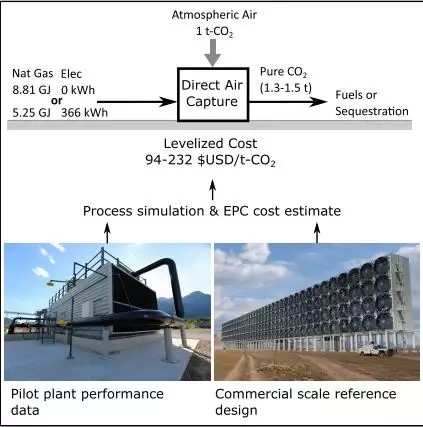 這家基于一種名為“直接空氣捕捉”概念的試驗工廠,目前很大一個角色是為經(jīng)濟分析提供基礎,包括來自所有主要部件的商業(yè)供應商的成本估算。最新的這篇論文中指出,根據(jù)不同的設計方案和經(jīng)濟假設,從空氣中捕捉1噸二氧化碳的成本在94美元至232美元之間。