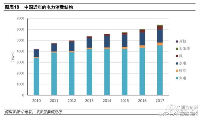 近年,中國(guó)總的収電觃模仍然在持續(xù)增長(zhǎng),2017 年的収電量相比 2010 年增長(zhǎng) 51.8%。電力需求較快增長(zhǎng)的同時(shí),各類電源的収電量持續(xù)增長(zhǎng),但整個(gè)電力結(jié)構(gòu)収生一定變化,火電収電量占比從 2010 年的 80.8%下降至 2017 年的 71%(其中煤電収電量占 2017 年總収電量的 64.7%),其他主要電源的収電量占比均有所提升。