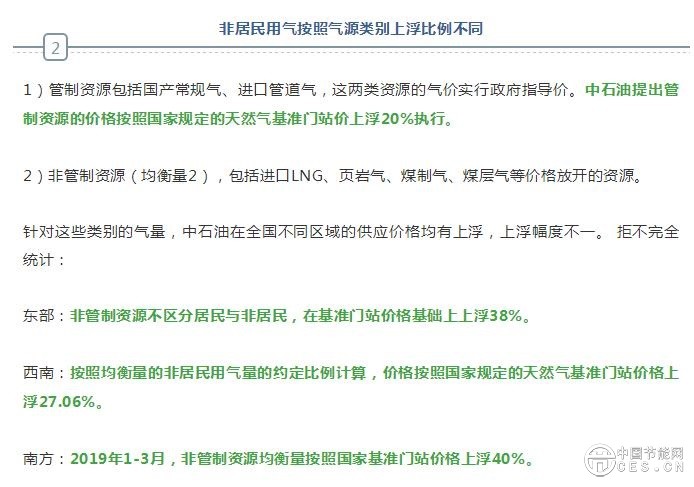 在定價(jià)策略中,2019年1-3月,南方非管制資源均衡量按照國家基準(zhǔn)門站價(jià)格上浮40%。