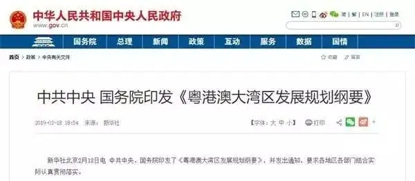 核心提示:2月18日,中共中央、國(guó)務(wù)院印發(fā)了《粵港澳大灣區(qū)發(fā)展規(guī)劃綱要》(以下簡(jiǎn)稱“綱要”),并發(fā)出通知,要求各地區(qū)各部門結(jié)合實(shí)際認(rèn)