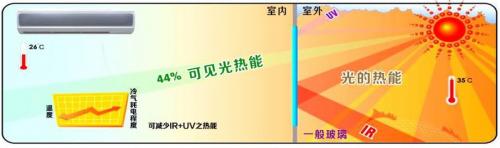 國(guó)安奇緯自主研發(fā)十余年的核心材料——節(jié)能型調(diào)光膜,已取得多國(guó)知識(shí)產(chǎn)權(quán)。能有效隔離UV與IR,達(dá)到透光不透熱的效果。當(dāng)光透過(guò)玻璃帷幕射入室內(nèi),產(chǎn)生大量熱能。如要調(diào)低冷氣溫度,每降低1℃,則需增加消耗電能6%。因此,戶外溫度過(guò)高,使用節(jié)能型調(diào)光膜調(diào)整在霧狀情況下,可確保室內(nèi)相對(duì)涼爽。節(jié)能型調(diào)光膜黏貼在您的玻璃上,隔熱效果良好。相關(guān)示意圖如下: