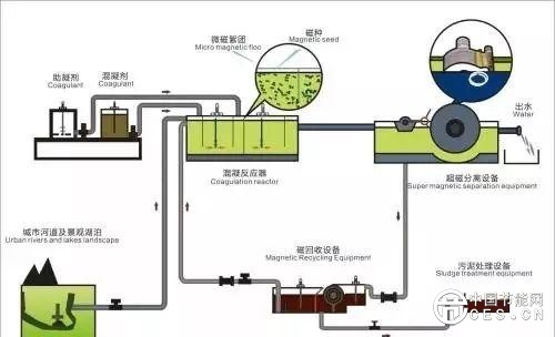 磁分離技術(shù)是近年來發(fā)展的一種新型的利用廢水中雜質(zhì)顆粒的磁性進行分離的水處理技術(shù)。對于水中非磁性或弱磁性的顆粒,利用磁性接種技術(shù)可使它們具有磁性。