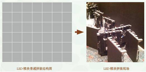 LED屏幕拼接技術(shù)是指將一個(gè)完整的圖像信號(hào)劃分成若干塊后分配給若干個(gè)視頻顯示單元。完成后形成多個(gè)普通視頻單元組成的一個(gè)超大屏幕動(dòng)態(tài)圖像顯示屏。大型的LED顯示屏是由若干個(gè)LED箱體組成,而每個(gè)LED箱體又是由若干個(gè)模塊組成,常見的模塊都為方形,根據(jù)不同點(diǎn)間距不同造型的顯示屏要求,顯示屏廠家會(huì)設(shè)計(jì)出各種尺寸的模塊拼接成不同形狀的屏幕。