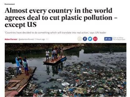 但這話可不是耿直哥自己瞎說的,而是源自多家英國和德國媒體的標(biāo)題。比如英國《獨立報》的標(biāo)題就寫道:“幾乎世界上所有的國家都同意減少塑料垃圾,除了美國”。