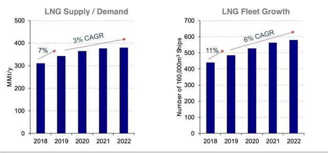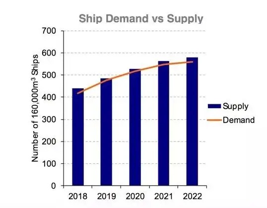 注:(2019年LNG船舶增速將超過LNG的需求增速。 數(shù)據(jù)來源:Poten& Partners)