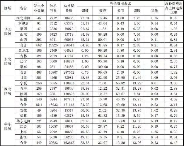 (一)各區(qū)域電力輔助服務補償費用情況