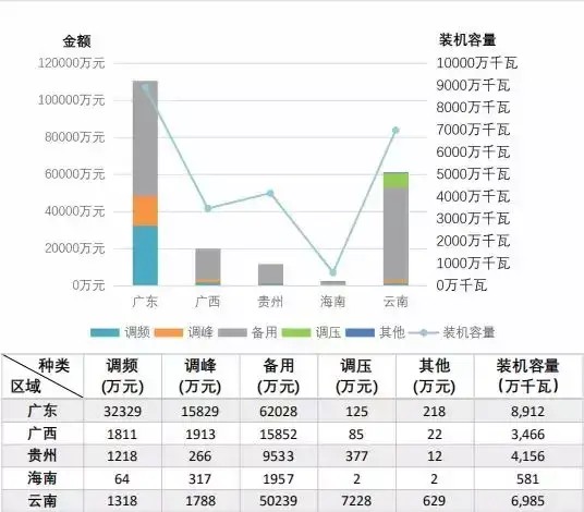 注:廣東調(diào)頻輔助服務市場于2018年9月1日啟動試運行并開始結(jié)算,4個月合計補償2.35億元,圖中未含該部分費用。