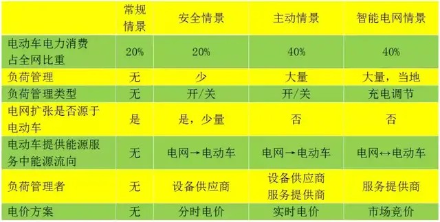智能充電實(shí)施的不同階段代表著電動(dòng)車和電力系統(tǒng)一體化融合的不同層次。這些不同階段包括:常規(guī)情景、安全情景、主動(dòng)情景和智能電網(wǎng)情景階段。從常規(guī)情景到智能電網(wǎng)情景,電動(dòng)車消費(fèi)電力占電力系統(tǒng)全部電力需求的比重在不斷上升。常規(guī)情景和安全情景階段,這個(gè)比重在20%左右,主動(dòng)情景和智能電網(wǎng)情景階段,這個(gè)比重在40%左右。