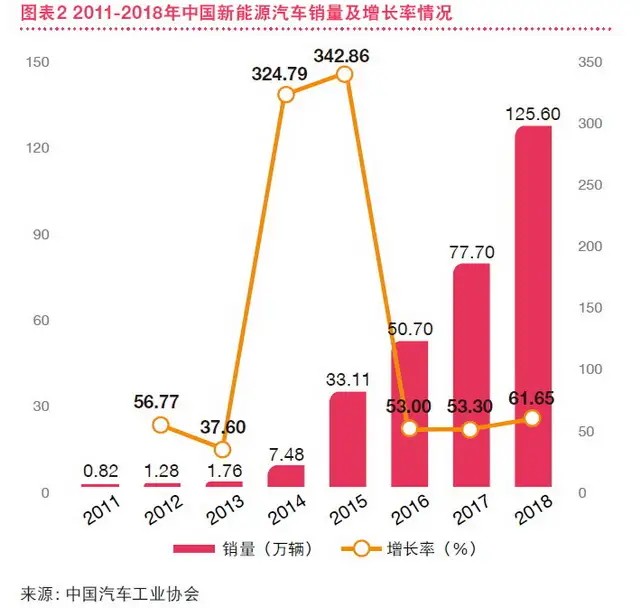 報(bào)告稱,2018年,中國新能源汽車產(chǎn)銷分別完成127萬輛和125.6萬輛,比上年同期分別增長59.9%和61.7%。2018年,中國新能源汽車銷量占汽車總銷量的比例也達(dá)到2.7%,較2017年度的1.8%的占比有明顯提高。