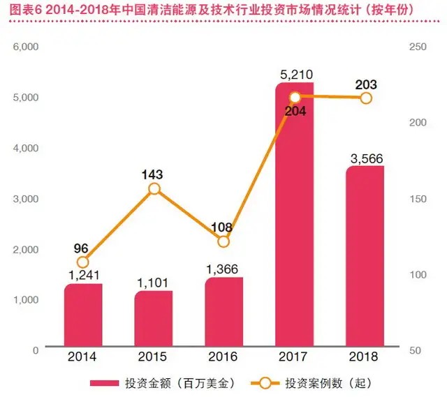 普華永道近日發(fā)布的《2018年中國清潔能源及技術(shù)行業(yè)投資研究報(bào)告》(下稱“報(bào)告”)顯示,2018年中國清潔能源及技術(shù)行業(yè)投資活動(dòng)保持活躍,全年共披露203起私募股權(quán)(PE)與創(chuàng)業(yè)投資基金(VC)投資案例,與創(chuàng)下過去五年最高活躍度的2017年基本持平。