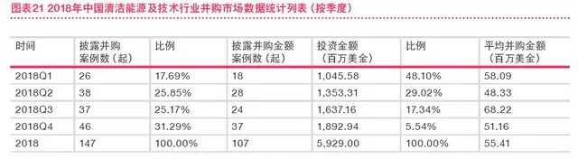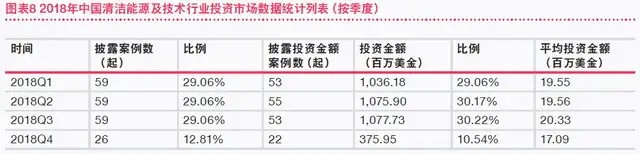 報(bào)告顯示,2018年,中國清潔能源及技術(shù)行業(yè)投資關(guān)注點(diǎn)仍然聚焦于環(huán)保和清潔能源技術(shù)領(lǐng)域,這兩個(gè)細(xì)分領(lǐng)域集中了行業(yè)70%以上的投資事件和76%的投資金額。