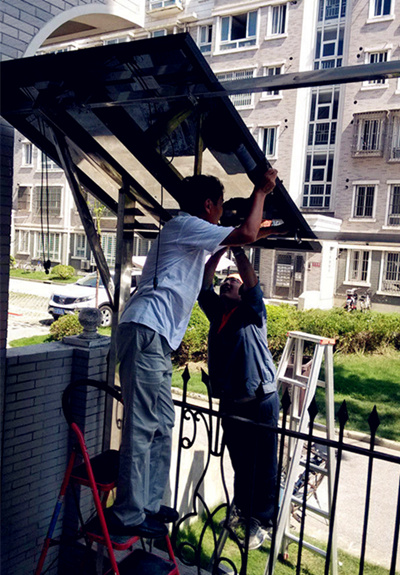 倪歡:首先是硬件條件允許:我家處在多層住宅樓的一樓,有一個將近30平方的狹長型院子。院子是東南朝向的,所以早上和中午都特別曬,我最初的想法是做一個有活動搖柄遮陽棚,算下來大概要一兩萬。因為我一直從事的低碳行業(yè)相關的研究,對光伏電站也有一定了解,所以當時認為不如做一個庭院式的分布式光伏電站,既可以發(fā)電,也不會影響采光。本來采用晶硅材料的方案需要伸出圍墻大概60公分,如果未來被小區(qū)業(yè)主投訴的話,城管可能會對電站進行拆除,所以有些猶豫。我也想過做BIPV(建筑光伏一體化),但供應商和其他朋友都認為不合算。所以最終的銅銦鎵硒薄膜太陽電池電站利用了庭院狹長的特點,占用了大概三分之一的長度,而且支架的高度大約為3米,所以也不會影響庭院中的活動,電站最高點投影下來在院子內(nèi)。