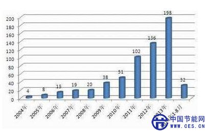 圖表2:截至2014年8月中國(guó)智能照明行業(yè)相關(guān)專利申請(qǐng)數(shù)量變化表(單位:件)