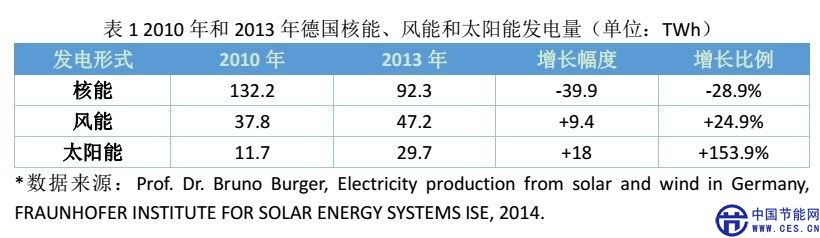 到目前為止,棄核政策已經(jīng)實(shí)施了三年多。當(dāng)初棄核政策反對(duì)者擔(dān)心的大規(guī)模停電并沒有發(fā)生,但可再生能源的發(fā)展速度也沒有快到如棄核政策支持者所想象的能夠填補(bǔ)關(guān)閉核電站所帶來的能源缺口。從表1可以看出,從2010年到2013年,德國(guó)核能年發(fā)電量減少了39.9TWh,風(fēng)能和太陽能年發(fā)電量總和增加了27.4TWh,兩者之間存在著12.5TWh的缺口。盡管風(fēng)能發(fā)電和太陽能發(fā)電的增長(zhǎng)速度已經(jīng)非??欤€是無法彌補(bǔ)放棄核電帶來的全部缺口。為此,德國(guó)政府選擇了新建燃煤發(fā)電站這一無奈之舉。德國(guó)能源和經(jīng)濟(jì)部長(zhǎng)稱,為了彌補(bǔ)放棄核電的缺口,德國(guó)必須新建8~10座燃煤發(fā)電站。2012年,德國(guó)政府開始批準(zhǔn)新燃煤電站的建造計(jì)劃。