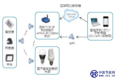 以家庭應用為例,個人用戶可對照明設備進行遠程遙控,出門在外也可通過手機關閉家中所有的燈;可以按照區(qū)域和功能對設備進行自由分組,實現(xiàn)更精準的控制;可通過定制化的應用程序,設定不同的場景模式(比如在看電影時調暗背景燈光),從而進一步優(yōu)化光源的使用效率。在控制系統(tǒng)中,照明設備和控制終端的通信是雙向的,可以實時監(jiān)控照明設備的使用情況,并將數(shù)據(jù)存儲在云服務器上?;ヂ?lián)網(wǎng)服務供應商通過對數(shù)據(jù)的匯總和分析,可以得到用戶的使用習慣,并從節(jié)能的角度出發(fā),向客戶建議更優(yōu)化的照明方式。