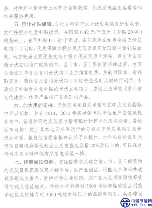 浙江《關(guān)于鼓勵(lì)企業(yè)自投自用分布式光伏發(fā)電的意見(jiàn)》