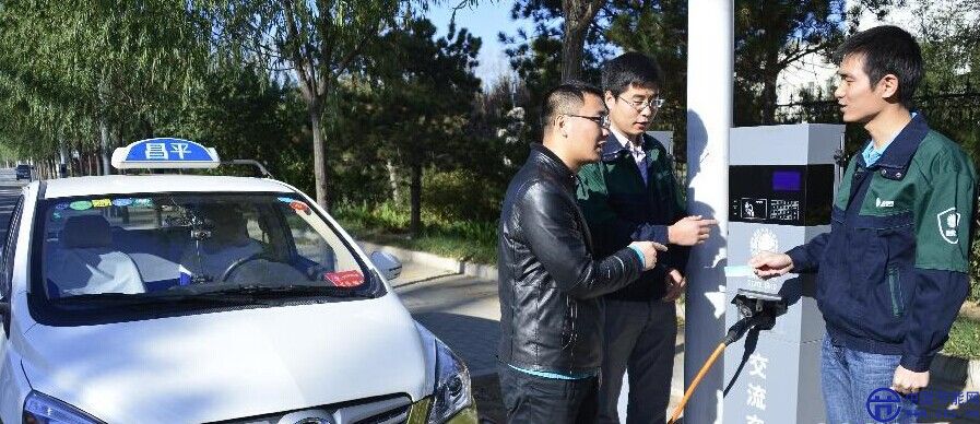 技術(shù)人員在給電動(dòng)出租車充電的駕駛員講解充電方法(11月5日攝)。近日,一項(xiàng)節(jié)能路燈充電樁實(shí)驗(yàn)項(xiàng)目落戶北京市昌平區(qū)京密路。實(shí)驗(yàn)項(xiàng)目由國(guó)家電網(wǎng)南瑞智芯微電子科技有限公司和北京市科委共同開展,實(shí)驗(yàn)項(xiàng)目將現(xiàn)有京密路上88盞傳統(tǒng)路燈的功率高、效能低的高壓鈉燈更換為高亮度低能耗的LED燈,通過(guò)依附于路燈桿的智能充電設(shè)備將節(jié)約的電能用于電動(dòng)汽車充電,最大限度利用現(xiàn)有資源,解決特大城市征地難、電路設(shè)施鋪設(shè)難等一系列問(wèn)題,對(duì)推進(jìn)城市新能源汽車應(yīng)用具有重要意義。