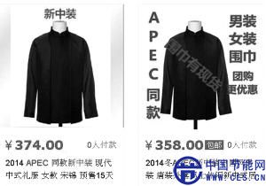 APEC會(huì)議上首次亮相的“特色中式服裝”,引起了社會(huì)公眾的關(guān)注,一些網(wǎng)店的掌柜迅速“嗅到”商機(jī),紛紛推出同款服裝(如圖)。昨天,服裝面料供應(yīng)商表示只提供私人定制,其他商家無(wú)權(quán)使用同款面料,網(wǎng)上熱銷的同款服裝均為仿制。