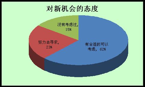 沒有考慮過離開現(xiàn)在服務(wù)企業(yè)的人才,他們就業(yè)的企業(yè)都是區(qū)域或者全國知名的企業(yè),實力雄厚且發(fā)展前景好,而卻人才深受領(lǐng)導(dǎo)的賞識和重用,薪水和發(fā)揮空間都不錯,對工作狀態(tài)和環(huán)境都具有非常高的滿意度。