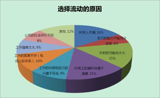 我們對這些流動人才進行調(diào)查后得出的數(shù)據(jù)結(jié)果如下圖分析所示: