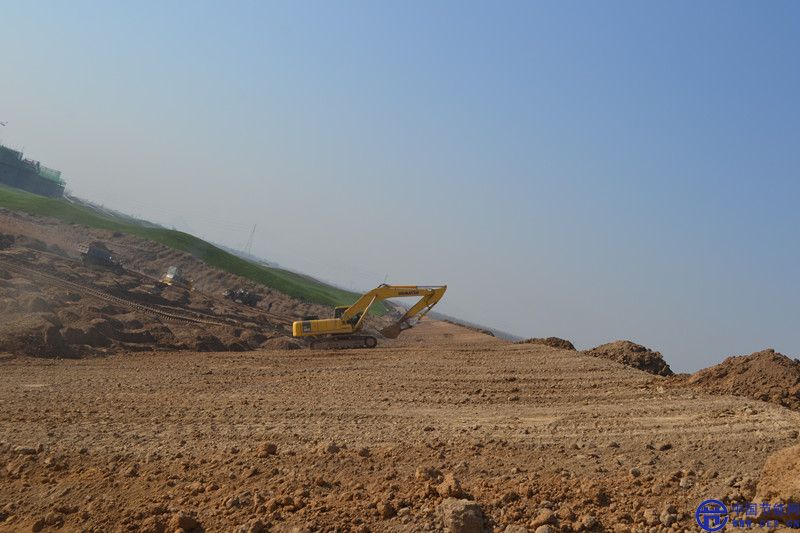 漕河:挖掘機正在作業(yè)筑起水泥壩