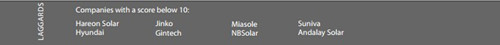 值得玩味的是,在國外某些媒體口中,低得分企業(yè)的態(tài)度變成了不愿多談。韓華 SolarOne的發(fā)言人稱,公司沒時(shí)間應(yīng)對(duì)這個(gè)榜單的調(diào)查,不對(duì)其排名作回應(yīng)。 得分只有14分的阿特斯太陽能也抱怨這個(gè)調(diào)查對(duì)于該公司經(jīng)營過程中的細(xì)節(jié)索求過分,并拒絕對(duì)其調(diào)查與排名作出回應(yīng)。但該公司在一個(gè)聲明中曾透露,這個(gè)榜單謬誤太多。“企業(yè)還未參與調(diào)查就被宣告有罪”,這是無理的。