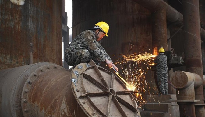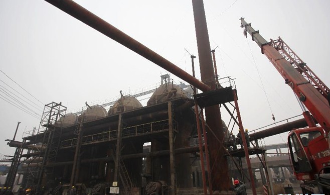 2月23日,工人在河北省張家口市宣化區(qū)張家口冀鋼鋼鐵有限公司拆除高爐。當(dāng)日,繼2013年11月24日化解鋼鐵過剩產(chǎn)能第一次“周日行動”后,河北省再出重拳,在唐山、邯鄲、秦皇島、邢臺和張家口集中拆除15家鋼鐵企業(yè)高爐16座、轉(zhuǎn)爐3座,壓減煉鐵產(chǎn)能671萬噸、煉鋼產(chǎn)能149萬噸,為確保完成今年壓減粗鋼1500萬噸產(chǎn)能的目標(biāo)任務(wù)奠定了良好基礎(chǔ)。新華社發(fā)(陳曉東 攝)