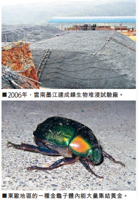 彭波介紹稱,地球上各類生物中,除病毒外均能在不同程度上從自然界中提取與富集金屬。如東歐地區(qū)的一種金龜子就能富集黃金,一些魚類能從水中吸收並富集 重金屬;生長(zhǎng)在富含金地區(qū)的木賊中的含金量高達(dá)60克/噸;中藥黃能富集鉑、鈀、金;蔥有富集銀的能力,是礦物指示劑植物。