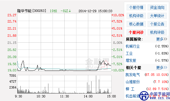 金融界網(wǎng)站12月29日訊 今日隆華節(jié)能(行情,問診)開盤報20.3元,截止09:34分,該股跌9.98%報19.04元,封上跌停板。