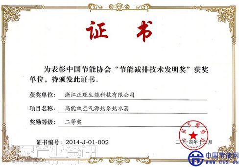 正理生能空氣能榮獲國家“節(jié)能減排技術(shù)發(fā)明獎(jiǎng)”