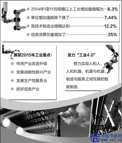 答:2013年年底定下的工業(yè)增加值增幅目標為9.5%。這個目標是根據(jù)中央對2014年GDP增幅目標設計和2013年四季度規(guī)模以上工業(yè)增加值增幅確定的,可以說是有根據(jù)的,實事求是的。2014年10月和11月的規(guī)模以上工業(yè)增加值分別為7.7%和7.2%,1至11月規(guī)模以上工業(yè)增加值增幅為8.3%。我們判斷8.3%的增速還處在一個合理區(qū)間,支撐了GDP約7.4%的增幅。同時結構調整取得了新進展,如單位增加值能耗下降了7.44%,高技術制造業(yè)增幅達到12.2%,信息消費總量增加了25%等。當然,我們應該看到經濟下行的壓力比較大。規(guī)模以上工業(yè)增加值增幅繼續(xù)呈現(xiàn)下行趨勢,工業(yè)企業(yè)利潤增幅下降表現(xiàn)更為明顯,10月份利潤負增長2.1%,11月更下降了4.2%。生產者產品出廠價格指數(shù)(PPI)連續(xù)33個月負增長。