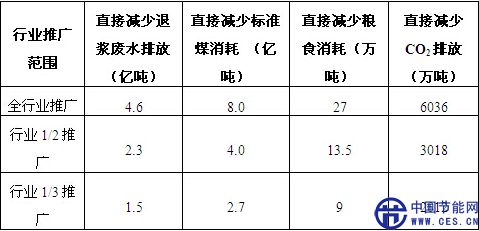 據(jù)中國紡織工業(yè)協(xié)會統(tǒng)計數(shù)據(jù),2013年全國規(guī)模以上紡織企業(yè)生產(chǎn)的棉布量為392.7億米,行業(yè)不同程度推廣無漿料技術(shù)環(huán)保效益如下: