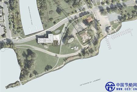 該項(xiàng)目包含了三個(gè)建筑結(jié)構(gòu):一個(gè)可追溯至1923年西班牙殖民時(shí)期的水泵房、1975年對(duì)這個(gè)結(jié)構(gòu)的擴(kuò)建體以及一個(gè)新增設(shè)的住宅空氣過濾設(shè)備。設(shè)計(jì)師運(yùn)用了集成景觀策略,將不同的建筑結(jié)構(gòu)串聯(lián)起來,把一個(gè)原本乏味的水務(wù)機(jī)構(gòu)變成了圣勞倫斯河畔的獨(dú)特景觀。