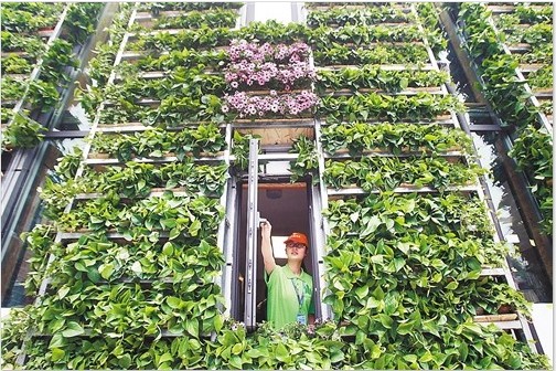 設(shè)計(jì)師給出了答案:水源都是通過(guò)收集屋頂?shù)挠晁?,安裝智能噴灌系統(tǒng),對(duì)墻面植被自動(dòng)灌溉,降低了房屋在給水方面的碳排放。